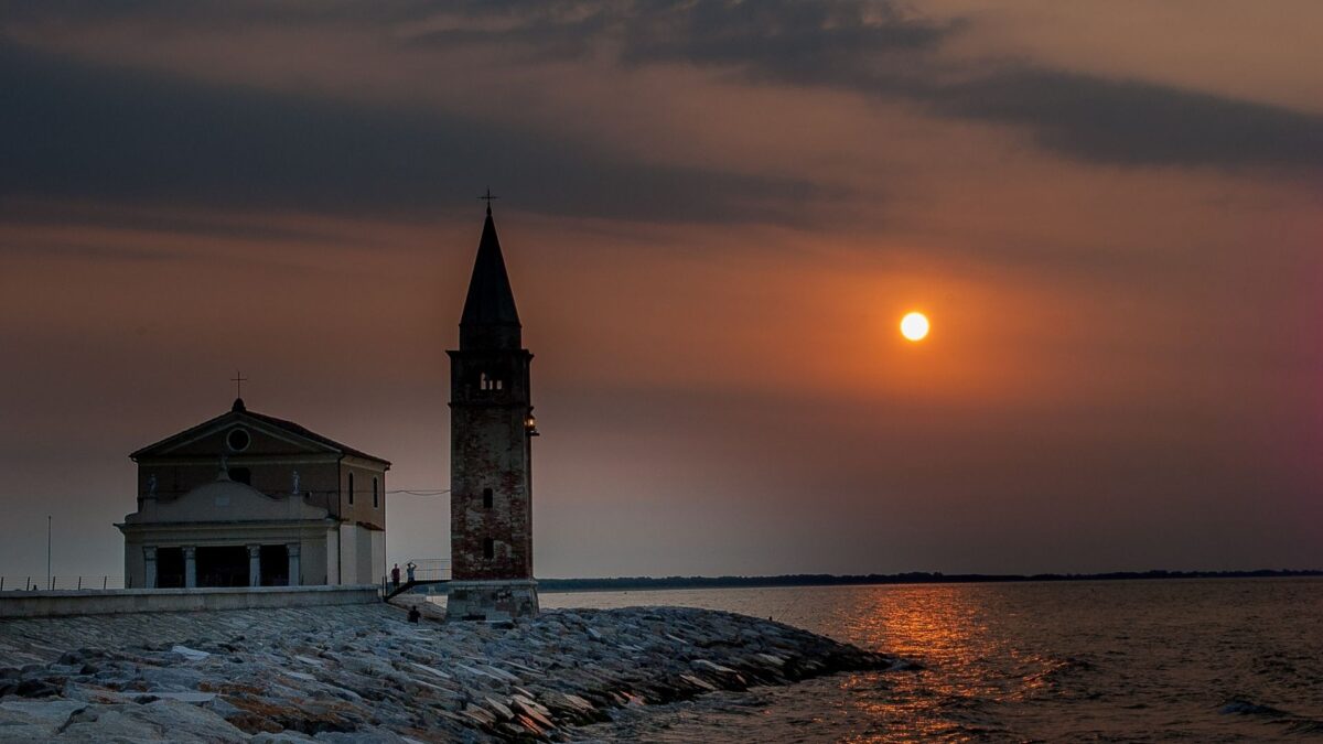 A pochi chilometri da Portogruaro, Caorle è una cittadina che incanta con i suoi vicoli colorati e il centro storico simile a quello di Burano. Il cuore di Caorle è il Campanile Romanico, che domina il paesaggio e si erge accanto al Duomo, offrendo una vista panoramica della città e del mare. La torre, che originariamente serviva come punto di avvistamento, è oggi uno dei simboli più riconoscibili della città e può essere visitata su prenotazione. Camminando lungo le vie di Caorle, si arriva alla Chiesa della Madonna dell’Angelo, un luogo di culto amato dagli abitanti e frequentato da coppie di sposi che scelgono questa location per il loro matrimonio. La chiesa si affaccia direttamente sul mare, creando un’atmosfera romantica unica.